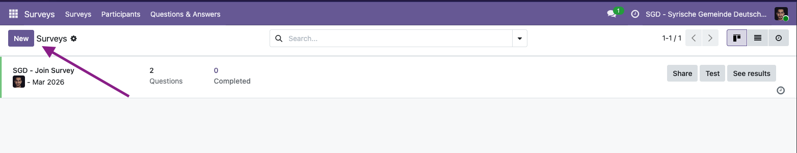 Abbildung 1: Erstellung einer neuen Umfrage in Odoo