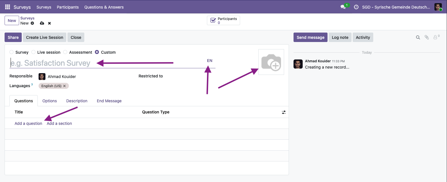 Das Design Ihrer Umfrage ist entscheidend für die Rücklaufquote. Odoo Umfragen bietet eine Vielzahl von Anpassungsoptionen, mit denen Sie professionelle und ansprechende Umfragen erstellen können. Sie können das Layout ändern, Bilder und Videos hinzufügen und die Farben an Ihre Marke anpassen.